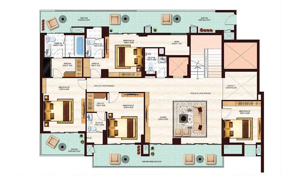 Bedrooms: 5 Bathrooms: 5 Super Area: 2700Sq. Feet.