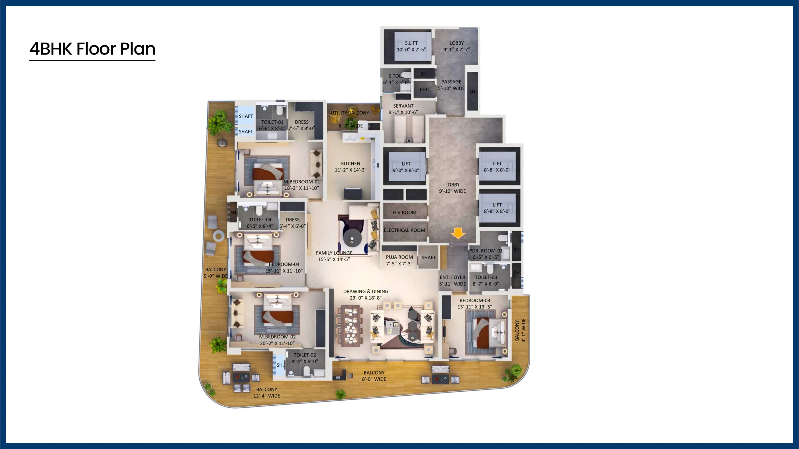 Bedrooms: 4 Bathrooms: 4 Super Area: 9773Sq. Feet.