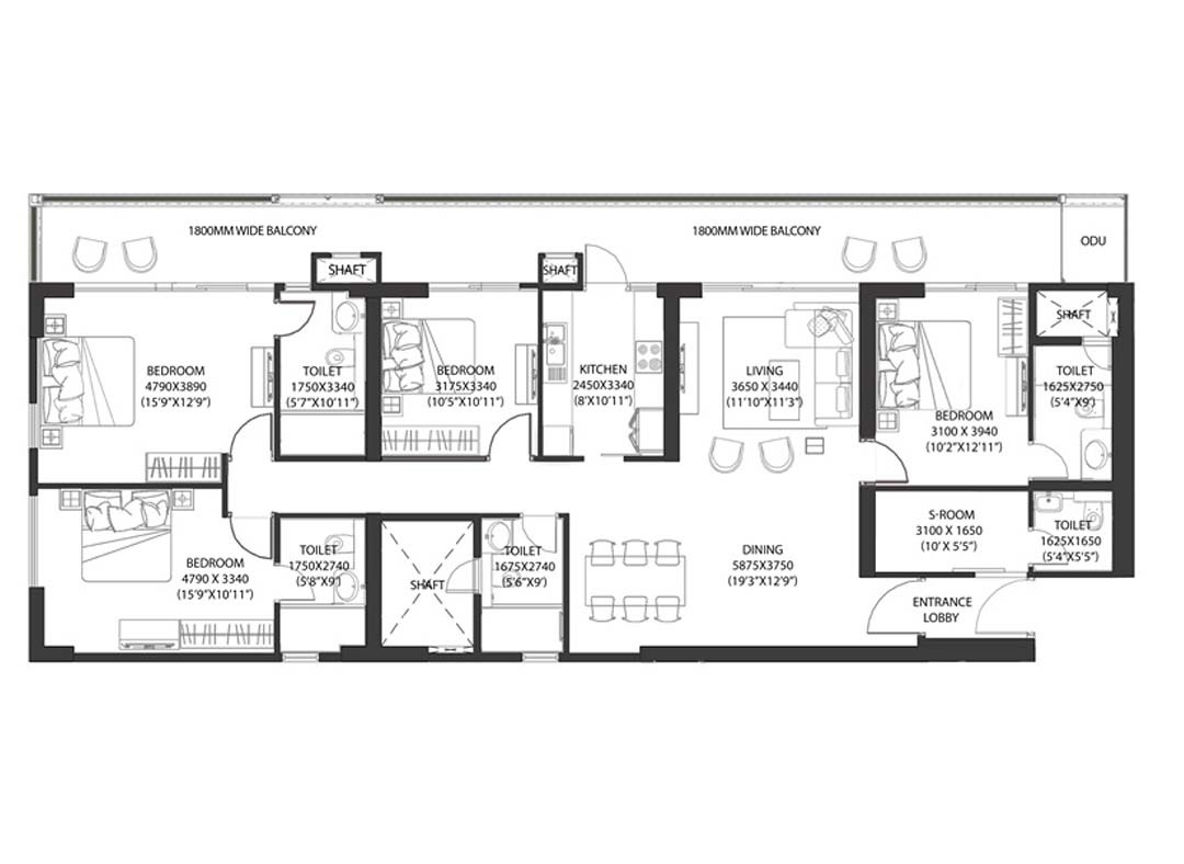 A 4BHK apartment with a super built-up area of 3092 sq.ft. offers a spacious and comfortable living space ideal for families. The carpet area, measuring 2040 sq.ft., ensures ample room for essential furniture and movement. Excluding the balcony, the covered area extends to 2156 sq.ft., providing a generous indoor space for personal and family activities.