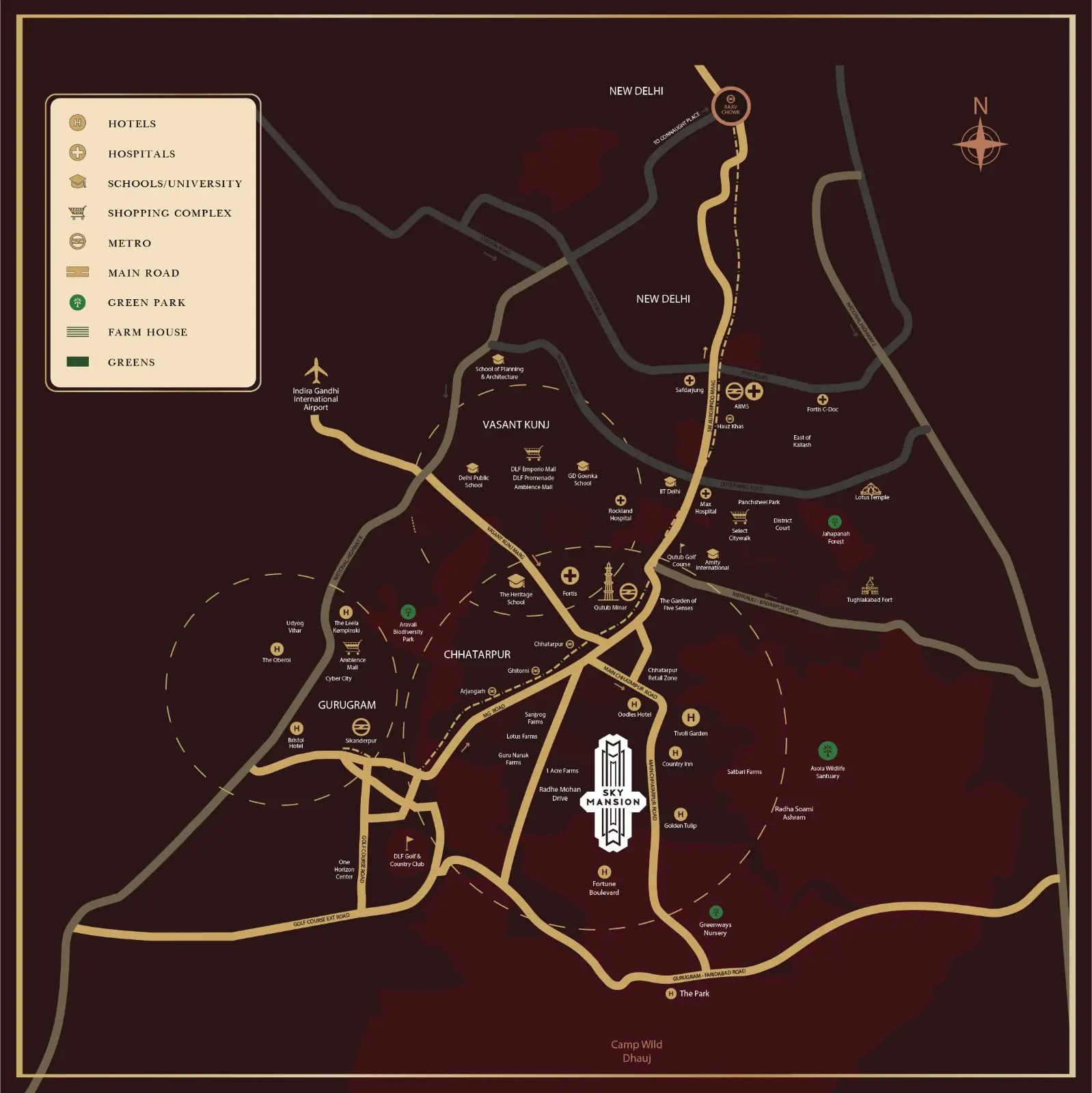 Risland Sky Mansion is a premium residential development by Risland Holdings, located in Chattarpur, Delhi. Spread across 4.10 acres, the project features 4 elegant high-rise towers, each with 22 floors.